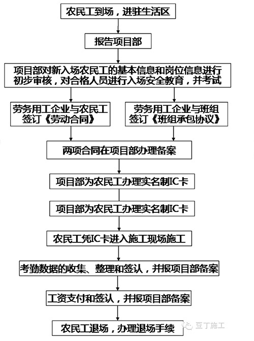 一、公司成立勞務管理中心,加強各相關職能部門的監(jiān)督與協作;分公司參照公司勞務管理中心機構和人員配置,必須成立分公司勞務管理中心,并配備勞務中心主任和相應的管理人員。組員:公司經濟管理部、財務部、安全管理部、質量技術部、法律事務部、政工部等部門負責人,公司勞務管理員、分公司勞務管理中心主任,各項目部。 項目經理部必須成立勞務管理領導小組,項目部勞務管理領導小組主要人員設置及要求如下:2、項目部必須設置一名副職以上人員作為勞務管理工作的第二責任人,其專職或兼職主管勞務日常管理工作。3、項目部使用勞務分包企業(yè)人員500人以上,必須設置專職勞務管理員1-4名;500人以下100人以上,必須設置至少1名專職勞務管理員;100人以下必須設置兼職勞務管理人員。 4、項目勞務管理不只是勞務管理員的職責,項目部相關部門必須直接參與勞務日常管理工作;各項目部根據項目實際情況,編制《項目勞務管理方案》,根據各項任務分解,方案中必須明確勞務管理領導小組成員和崗位職責,以及應急預案。5、勞務分包合同中須明確約定現場各分包隊伍必須設置一名以上專職勞務管理員。1、如何做到勞務分包隊伍自覺向項目部申報施工人員進場情況的關鍵是:現場封閉管理——沒有按規(guī)定辦理手續(xù)堅決不能進入施工現場。2、七天內辦理好以下相關手續(xù),考慮到現場施工和減少作業(yè)人員等待時間的需要,可以優(yōu)先上報花名冊和辦理IC卡,但其他手續(xù)辦理完成以7天為管理底線。3、《勞動合同》是國家《勞動合同法》明文規(guī)定要簽訂的,但建筑行業(yè)農民工群體執(zhí)行普遍不好,但涉及到勞務糾紛時,政府是依照《勞動合同》辦理。《班組承包協議》不同于集體合同,是民間行為,目前階段以及政府為了維穩(wěn),該協議是不受法律保護的,但大部分老板與作業(yè)人員在建立相互信任、協商的基礎上,基本上都是按照班組承包協議辦理結算。4、安全入場教育及考試等也是《勞動合同法》中要求施工企業(yè)做到的 。