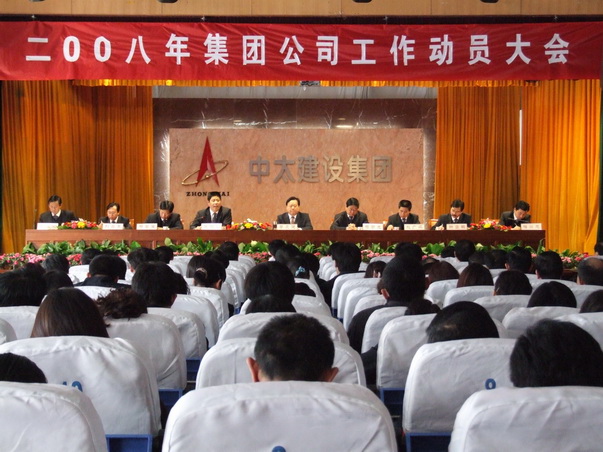 2008年2月22日,中太建設(shè)集團(tuán)隆重召開了2008年工作動員大會。集團(tuán)公司下屬各單位正、副職領(lǐng)導(dǎo)、支部書記、主任工程師及主要管理人員,總部及各事業(yè)部機(jī)關(guān)全體人員共241人參加了大會。