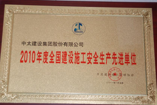 集團公司榮獲“2010年度全國建設施工安全生產先進單位”榮譽