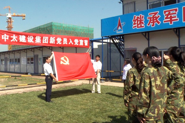 7月3日上午9點(diǎn),中太建設(shè)集團(tuán)黨委在安瑞科項(xiàng)目工地舉行新黨員入黨宣誓儀式。在鮮紅的中國共產(chǎn)黨黨旗面前, 16名新黨員整齊排列成行,舉起右手,握拳過肩,莊嚴(yán)宣誓,表達(dá)了為共產(chǎn)主義事業(yè)奮斗終身的決心。集團(tuán)黨委副書記鐘崇鶴參加宣誓儀式并講話。他代表集團(tuán)黨委向全體新黨員表示祝賀,并提出了明確的要求和希望。他希望新黨員同志們不要辜負(fù)黨組織的期望,牢記入黨誓言,牢記全心全意為人民服務(wù)的宗旨,發(fā)揚(yáng)黨的優(yōu)良傳統(tǒng)和作風(fēng),在“創(chuàng)先爭優(yōu)”活動中,在各自的工作崗位上,熱愛本職、學(xué)習(xí)本領(lǐng),努力工作,發(fā)揮好黨員的先鋒模范帶頭作用,為黨的事業(yè)和中太的發(fā)展做出自己新的、更大的貢獻(xiàn),以更加優(yōu)異的成績,喜迎黨的十八大的勝利召開,無愧于共產(chǎn)黨員的光榮稱號!