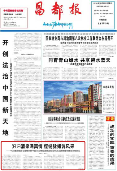 據統計,2013年6月以來,中太建設集團在昌都中標金額約4.86億元,合同約定墊資金額約2億元,中太建設集團在戰略合作伙伴中國農業銀行昌都縣支行的鼎力支持下有效解決了工程建設墊資的實際性困難,共同為昌都的城市建設添磚加瓦、合作共贏、奉獻力量。截至2014年10月,已完成合同金額總產值約3.9億元。