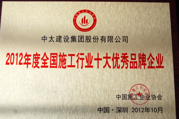 2012年度全國施工行業(yè)十大優(yōu)秀品牌企業(yè)