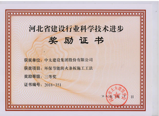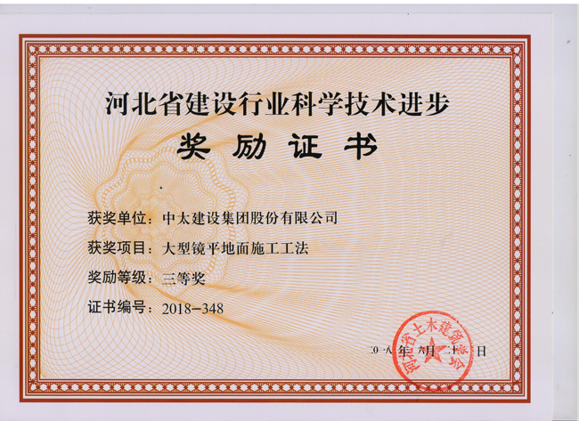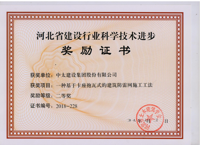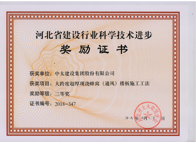 2018年河北省建設(shè)行業(yè)科學技術(shù)進步獎勵證書匯總