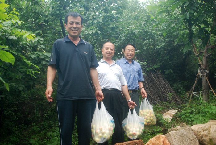 從京承高速公路下道,兩輛大巴車沿著崎嶇山路緩慢行駛。山道兩側灌木郁郁蔥蔥,置身于這天然氧吧,清新的空氣順暢地能讓人一下子呼吸到了丹田而心神氣爽。一路上,路邊采摘的果園比比皆是。空氣中那果實散發出的清香,直入心脾,令人口舌生津。