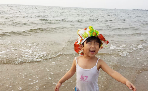 拍了照片后,突然讓我感覺像文清同學媽媽去澳門時住在海景房拍的海景照片! 看完海景就開始了匆忙的換泳衣準備下海,海景公寓的好處就是出來小區走上自己的棧道就是小區的私家海灘,非常干凈。近距離的接觸大海,吹著涼爽的風(天氣多云,溫度在29度),讓我們一行幾個馬上開懷起來,每個人的興奮在臉上流露。孩子是最興奮的,跑到海邊上,任憑海浪一層層的打過來(這天風并不大),孩子說:“媽媽,你看大海碰我了!”竟然用起了擬人句,把大海打過來的浪花比作在“碰”,這字用的多么美妙啊!我一邊欣賞著美景一遍在咂摸著這話,贊嘆著孩子的天真和用詞之妙。我們真的跳入大海浸泡的時候,舅舅在照顧著她,突然一個浪打在了孩子的頭上,孩子嚷著:“我要離開大海了”,這是在身邊的舅舅轉告我的,我在想孩子真是長大了,會表達很多個人的感情了,“啊,我要離開大海了”是一個陳述句,但是好像是表達著一種不舍得離開但是有不得已的感情,她很想在大海里再待一會,但是因為她被浪花打濕了頭發,依她個人的膽量可能害怕了,所以說了句“啊,我要離開大海了”,孩子的成長讓我們自覺不自覺真切感受到了。然后她自己在海灘玩沙子,挖了大大的沙坑,每當海浪沖過來的時候,總是興奮的說:“媽媽大海幫我大忙了,還給其他家人也興奮的嚷嚷,大海可是幫了大忙了”。當我問她到底幫了什么忙時,她說:“大海給我的沙坑送來了水啊”(估計是她不用拿著自己的小碗去海邊舀水了)。我感嘆著女兒的天真浪漫和快樂興奮,內心在想:帶著孩子出來玩玩是多么對的選擇,大自然的風光的確是能刺激人的靈感,說了那么多令我平時聽不到的妙字妙語。這趟短途旅行意義非凡!